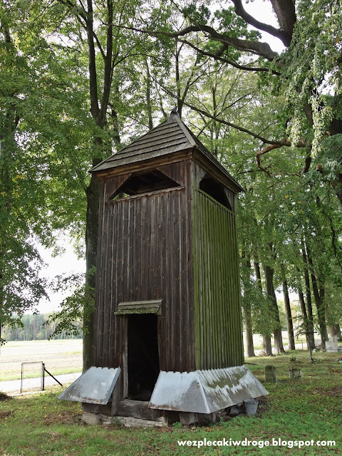 Drewniana dzwonnica wzniesiona pod koniec XIXw. |